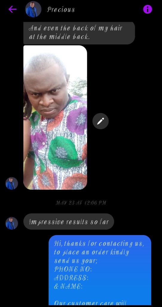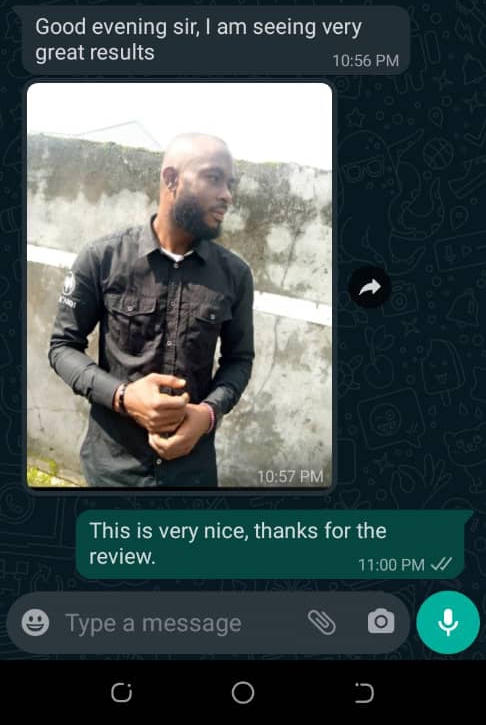 May be you have been buying other product giving you promises and high hopes of getting results in 7 days, 7 days? Listen carefully this is not skin care treatments like sunburn or acne treatment that can be treated in 7 days, this is hair loss treatment that requires your dedication, patience and consistency to achieve it. its funny when I see other advertisers write get results in 7 days and people fall for it. Like treat bald hair in 7 days? This is practically impossible.